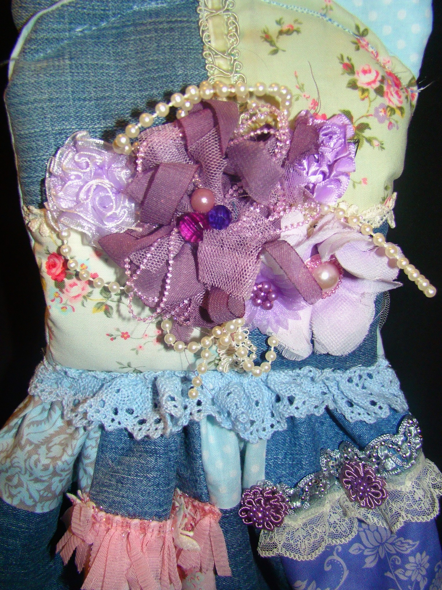 Here is one of my all time favs.. This beauty is made of recycled denim, lots of lace, flowers, crystals, and lined in a high quality cotton blue print. Double padded at the shoulder, double sewn, Pocket inside and on the outside, and this one has two leash attachments inside. What a lovely sling it is.. and so comfy to carry the fur babies around in. For information on how to order one, please send me a private message on Face book.