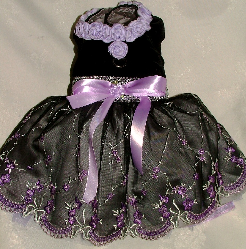 Black Velvet and Lavender Rose Designer Dog Dress