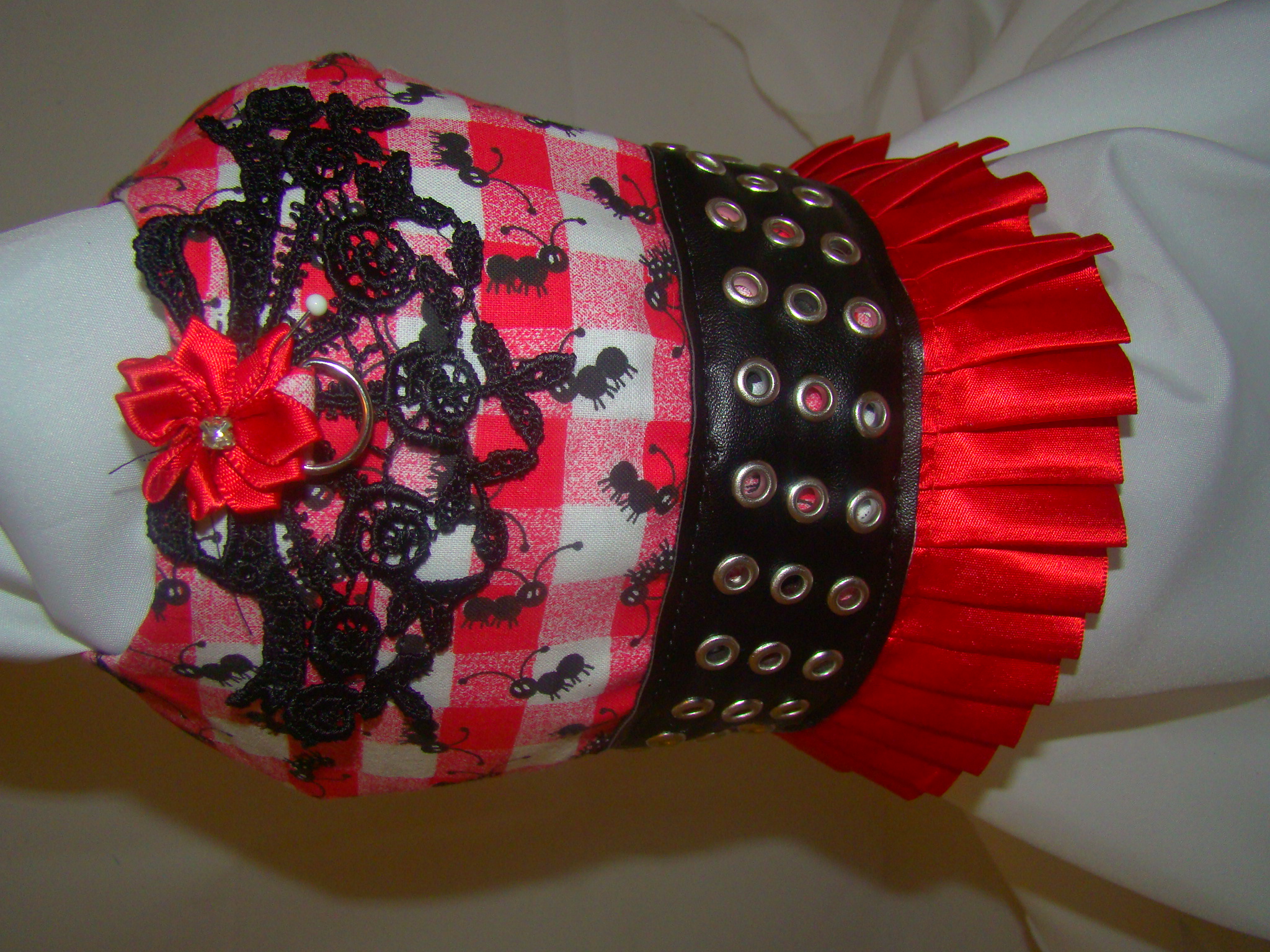 Adorable harness perfect for doggie picnics and 4th of July! black lace applique adorns the collar fitted with a red bloom in the center with D-ring. Fully lined and interfaced. Neck 11 inches, chest 13 inches, Length 6 inches. If you are interested in any of my one of a kind, quality and comfort made designs, please contact me at [email protected] or message me on facebook or Etsy.